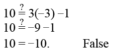 Since the coordinates of point A make the equation true, point A is on the graph of Point is not on the graph of since substituting and to the equation yields a false statement, as shown below.