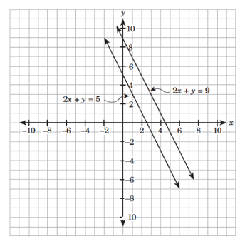 The two lines have the same slope, which is –2. They have different y-intercepts, which are 5 and 9. The system has no solution; hence, it is inconsistent. Refer to its graph below.