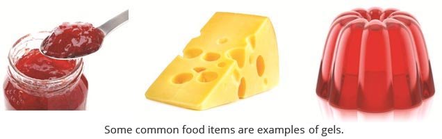 Gels are colloids that result from dispersing liquids in a solid medium. Examples of gels are jelly, jam, cheese, butter, and gelatin.