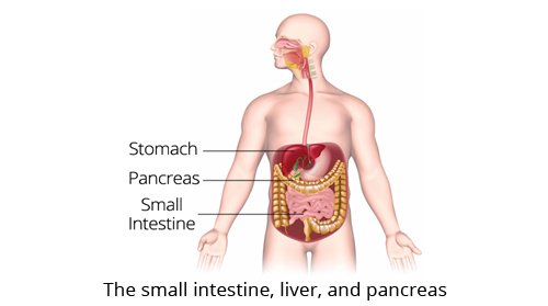 The small intestine is a 2 m long, narrow tube located in the lower abdomen. The digestion process is completed here with the help of the pancreatic juices and bile juices.