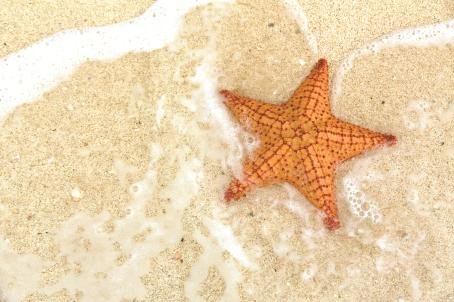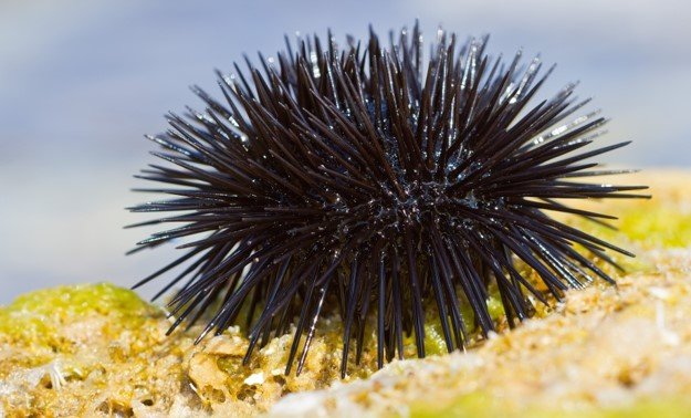 Echinoderms are spiny-skinned, marine invertebrates. They include the sea stars also known as starfishes, brittle or basket stars, sea urchins, sea cucumbers, and crinoids or feather stars. They are distinguished from other invertebrates by having five arms or more, all of which equally radiate from the center of their bodies. The internal support of their bodies consists of interlocking calcium carbonate. They do not have body parts like brain, eyes, and a heart. Some species, however, have light-sensitive parts of their arms. The mouth of most species, except sea cucumbers, crinoids, and some sea urchins, is situated underneath their bodies, while the anus can be found on top.