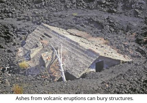 Pyroclastic materials—a mixture of hot rock fragments, ash, and superheated gases—from volcanic eruptions can damage a wide area. These materials create an eruption column of over 19 m high.
