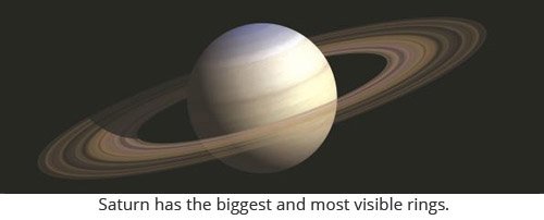 Saturn has seven well-known flat rings made up of ice particles. It has the biggest and most visible rings that horizontally spin around the planet.