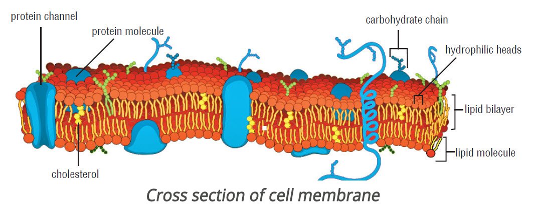 The cell membrane holds the cell together. It is made up of two layers of molecules and in plants is protected by the cell wall, a rigid nonliving structure that serves as framework for the cell and protects it. The cell membrane is thin and has small openings in it that allow substances such as water, amino acids, certain kinds of sugar, and lipid-soluble substances to pass in and out of the cell. However, it does not allow polysaccharides, proteins, and very large molecules to enter the cell.