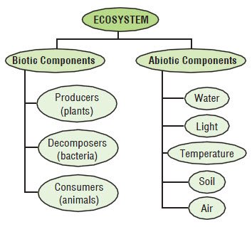 You and all the living and nonliving things that you interact with in your environment make up an ecosystem. The living things are known as the biotic components while the nonliving things are the abiotic components of the ecosystem.