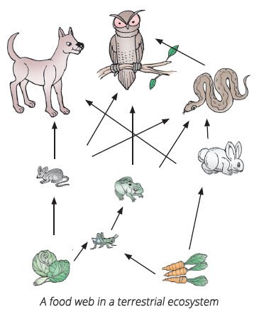 An organism in one food chain can belong to other food chains. In turn, different food chains can be grouped to form a complex interrelationship called a food web. Unlike the food chain, the food web shows that organisms have more than one source of food.